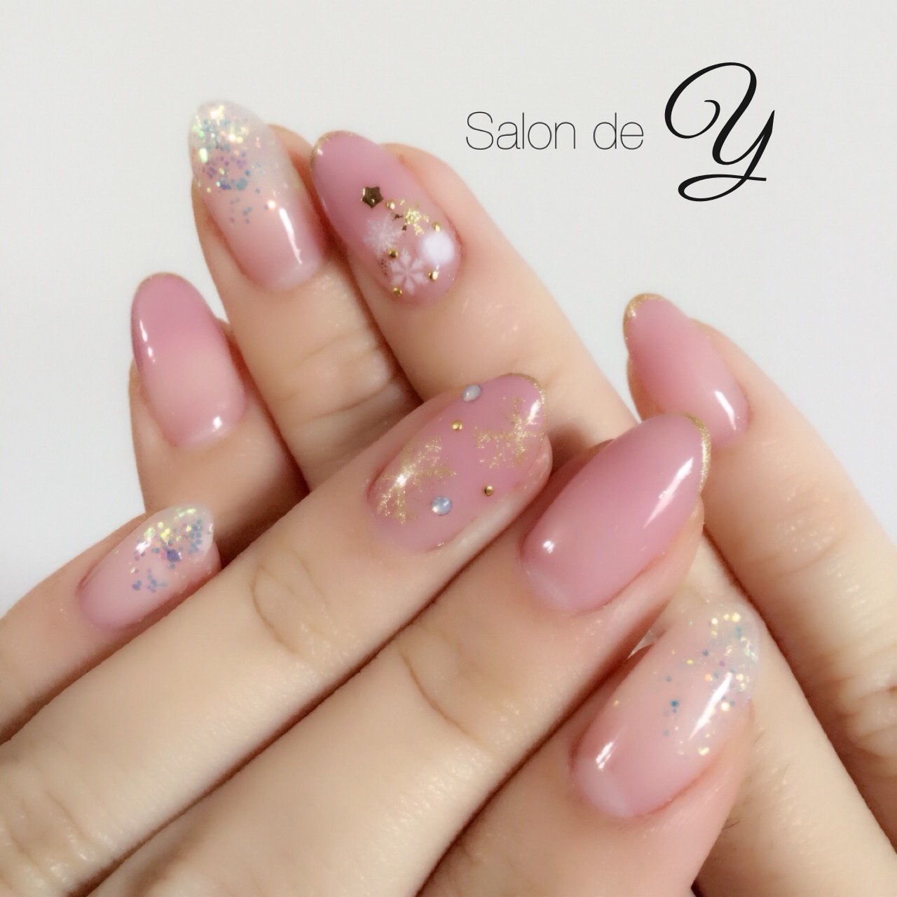 ベビーピンク 雪の結晶の 冬ネイル 千歳烏山 芦花公園 富士見ヶ丘 八幡山 仙川 久我山 高井戸 ネイルサロン Sweet Olive